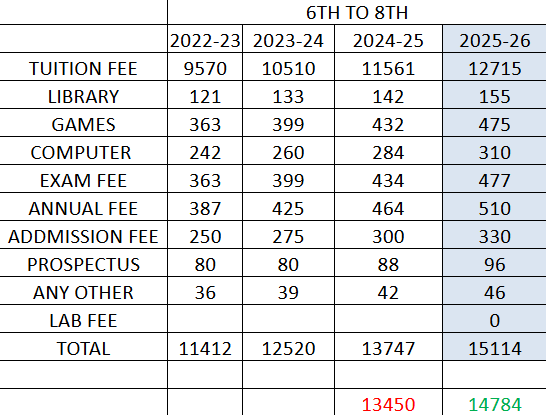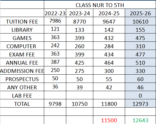 Please refer the below sections to view and download the detailed fee structure and syllabus for each academic year and class.